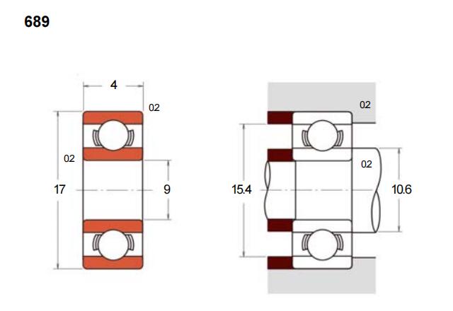 689型深沟球轴承属于标准微型球轴承系列,其基本尺寸为内径9mm、外径17mm、厚度4mm。该结构具有典型的深沟设计,可同时承受径向载荷与一定程度的轴向载荷,适用于高速运转及低噪音需求场景。