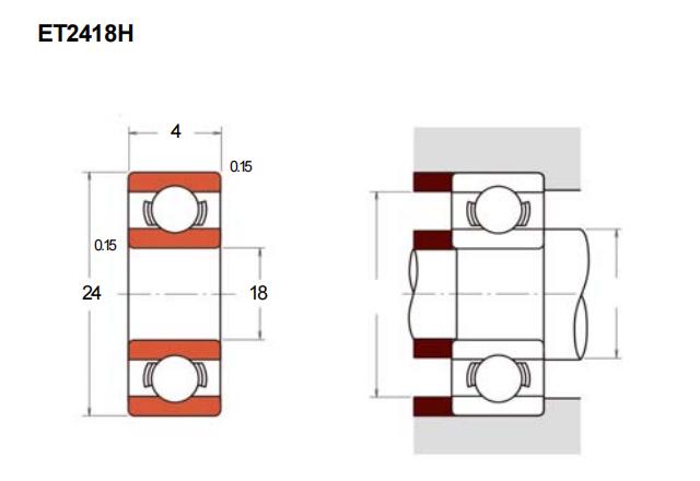 ET2418H是一种深沟球轴承,属于微型球轴承类别,采用不锈钢材质制造。其基本尺寸为内径18毫米、外径24毫米、厚度4毫米,适用于空间受限的精密应用场景。该轴承的设计支持径向和轴向负载,具备良好的运转平稳性和低摩擦特性。