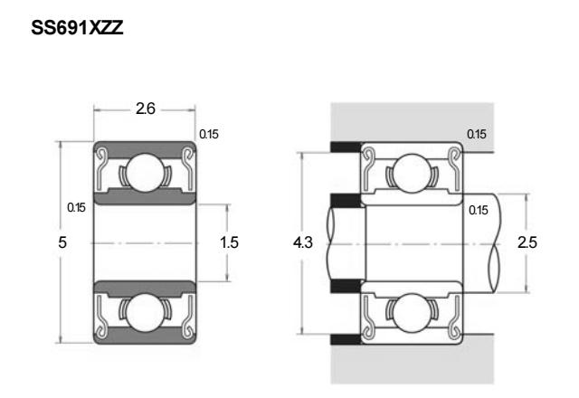 SS691XZZ是一款微型深沟球轴承,采用不锈钢材质制造。其内径为1.5毫米,外径为5毫米,厚度为2.6毫米。由于采用不锈钢材料,该轴承具有一定的防腐蚀能力,适用于潮湿或需要清洁的环境。