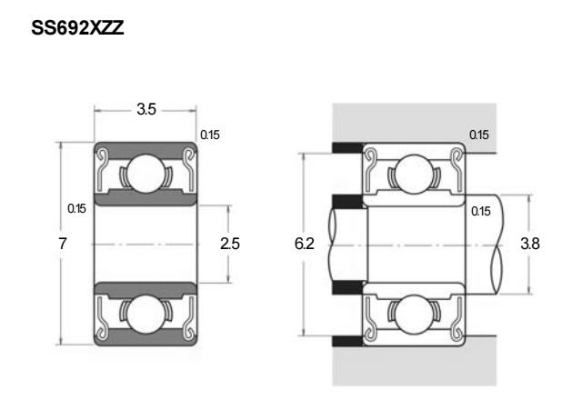 SS692XZZ 是一款微型深沟球轴承,采用不锈钢材质制造。其基本尺寸为内径2.5mm、外径7mm、厚度3.5mm,属于超小规格轴承类型,适用于空间受限的精密应用场景。