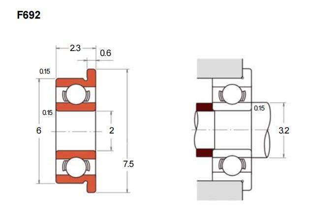 F692型轴承属于深沟球轴承类别下的法兰微型球轴承系列,其结构紧凑,适用于空间受限的轻载应用场景。该轴承采用法兰外圈设计,可简化安装过程并提供轴向定位辅助,有助于减少部件数量和装配成本。基本尺寸为内径2mm、外径6mm、厚度2.3mm,符合微型轴承的典型特征。