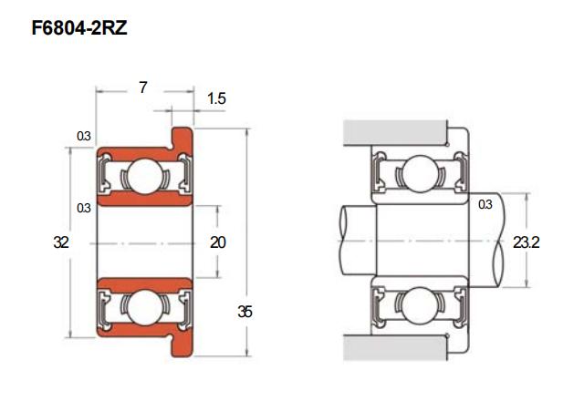 F6804-2RZ是一种带法兰的深沟球轴承,属于法兰标准型结构。其公称内径为20mm,外径为32mm,厚度为7mm,尺寸设计紧凑,适用于安装空间有限的场合。该轴承两侧配备接触式密封(2RZ标识),具有一定的防尘和防油脂泄漏能力,可提升运行稳定性。