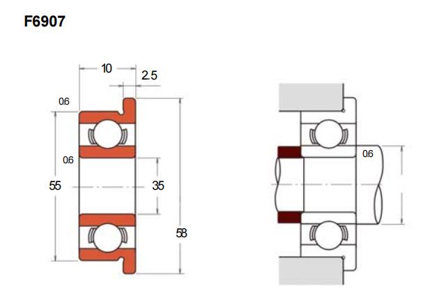 F6907是一款法兰标准型深沟球轴承,具有内径35mm、外径55mm及厚度10mm的基本尺寸规格。该型号轴承采用法兰外圈结构,便于安装定位,适用于对轴向固定有要求的应用场景。深沟球轴承设计可承受径向负荷与一定程度的双向轴向负荷,运转平稳且噪音较低。