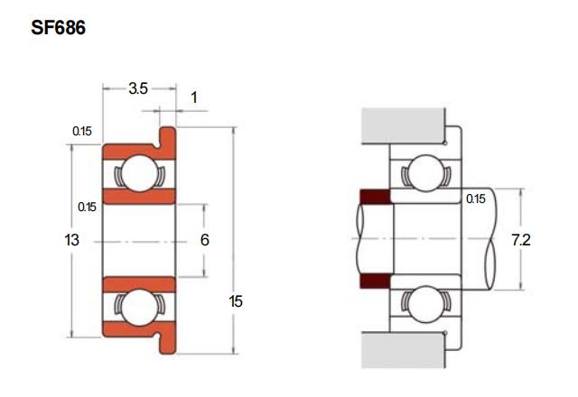 SF686是一款微型深沟球轴承,属于法兰不锈钢微型系列。其基本尺寸为内径6毫米、外径13毫米、厚度3.5毫米,结构紧凑,适用于空间受限的精密场合。