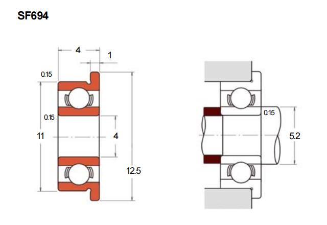 SF694是一款不锈钢材质的法兰型深沟球轴承,属于微型轴承系列。其内径为4毫米,外径11毫米,厚度4毫米,结构紧凑,适用于空间受限的精密装置。该轴承外部集成法兰设计,简化了轴向定位与安装过程,同时增强了在轻微偏心工况下的稳定性。