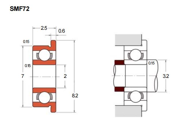 SMF72型轴承属于深沟球轴承中的法兰不锈钢微型类别,其结构设计紧凑,适用于空间受限的精密应用场景。该轴承基本尺寸为内径2毫米、外径7毫米、厚度2.5毫米,采用不锈钢材质,具备一定的耐腐蚀性和耐磨性,能在一般环境条件下保持稳定运行。