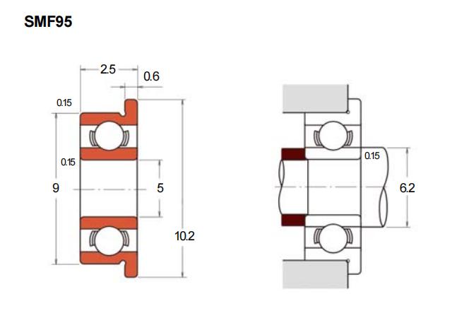 SMF95是一款微型深沟球轴承,属于法兰不锈钢微型系列,采用冲压外圈和法兰式设计,基本尺寸为内径5mm、外径9mm、厚度2.5mm,适用于空间受限的精密场合。