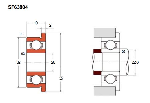 SF63804属于深沟球轴承类别中的法兰不锈钢型轴承,其基本尺寸为内径20mm、外径32mm、厚度10mm。法兰结构设计便于安装和定位,适用于空间受限或需简化装配的场景。该型号轴承采用不锈钢材质,具备一定的防腐蚀能力,能在潮湿或轻度腐蚀环境中保持性能稳定。