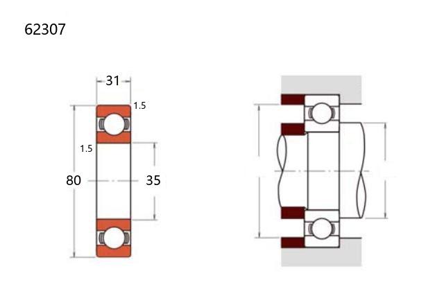 按密封形式区分 | 接触式密封 | 62307-2RS |