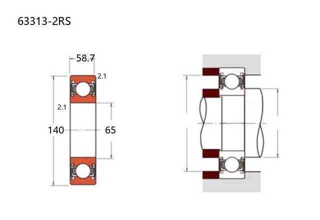 63313-2RS是一款标准型深沟球轴承,其基本尺寸为内径65毫米、外径140毫米、厚度58.7毫米。该轴承采用两侧接触式密封结构(2RS设计),有助于在运行时减少润滑脂泄漏并阻挡外部污染物侵入,适用于多种一般工业环境。