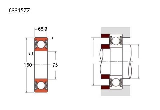 63315ZZ属于深沟球轴承中的标准型产品,其主要尺寸为内径75mm、外径160mm、厚度68.3mm。该型号轴承采用双面防尘盖(ZZ后缀)设计,可有效减少污染物侵入并延长使用寿命,适用于中等转速及常规载荷场景。
