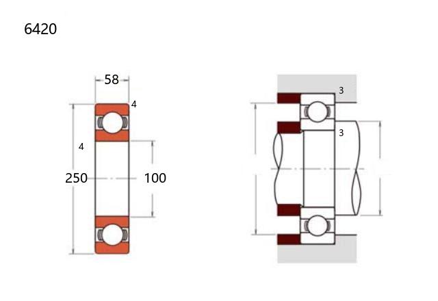 6420型轴承属于深沟球轴承中的标准型产品,其内径为100mm,外径为250mm,厚度为58mm。这类轴承结构简单,运行稳定,具备一定的径向和轴向载荷承载能力,适用于中等转速场合。