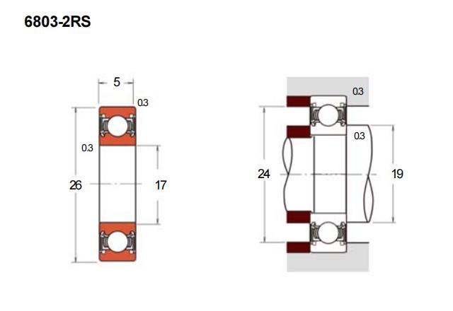 后缀列表:【-2RS:双面带接触式 NBR 丁腈橡胶密封件】