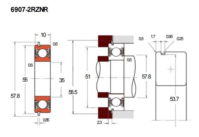 | 接触式密封 | 6907-2RSNR | |