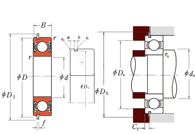 后缀列表:【-2RZ:两侧有非接触式钢骨架橡胶密封圈】【NR:带止动环和止动槽】