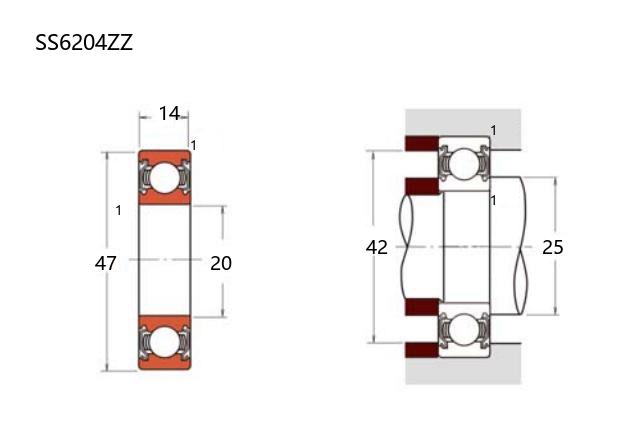 按密封形式区分 | 铁盖 | SS6204ZZ |