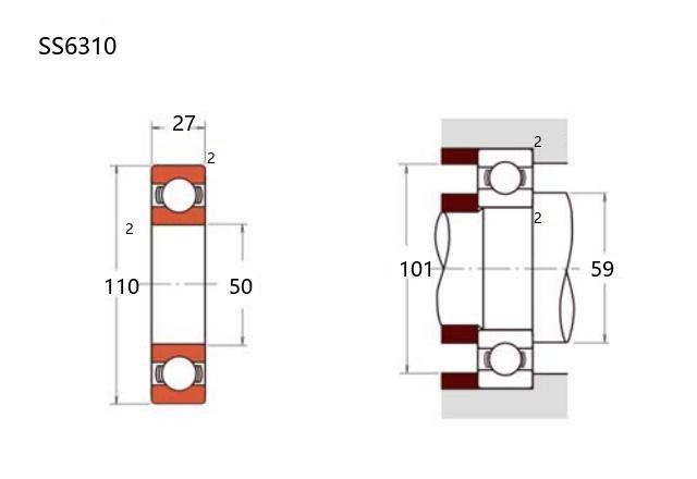 按密封形式区分 | 接触式密封 | SS6310-2RS |