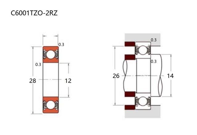 C6001TZO-2RZ是一款混合陶瓷深沟球轴承,属于标准深沟球轴承类别。其内径为12毫米,外径28毫米,厚度8毫米。该轴承采用氧化锆陶瓷材质滚动体,配合钢制内外圈结构,在保持较高承载能力的同时,降低了运转部件的整体质量。
