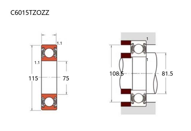 C6015TZOZZ是一款深沟球轴承,采用混合陶瓷结构设计。其内径为75毫米,外径为115毫米,厚度为20毫米,具备标准尺寸规格。该轴承的滚动体由氧化锆(ZrO₂)陶瓷材料制成,内外圈通常采用钢制结构。