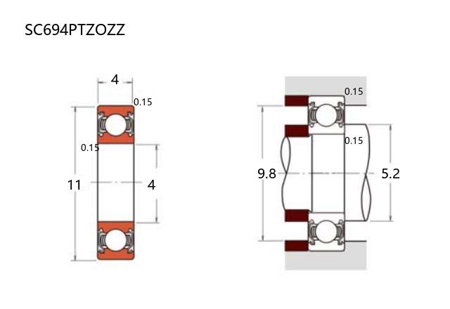 SC694PTZOZZ是一款不锈钢混合陶瓷深沟球轴承,其内径为4毫米,外径11毫米,厚度4毫米。该轴承属于标准深沟球轴承类别,采用不锈钢外圈与内圈,配合氧化锆陶瓷滚珠。氧化锆材质具有较高的硬度和耐磨损特性,同时表现出良好的耐腐蚀性能,适用于多种工况环境。
