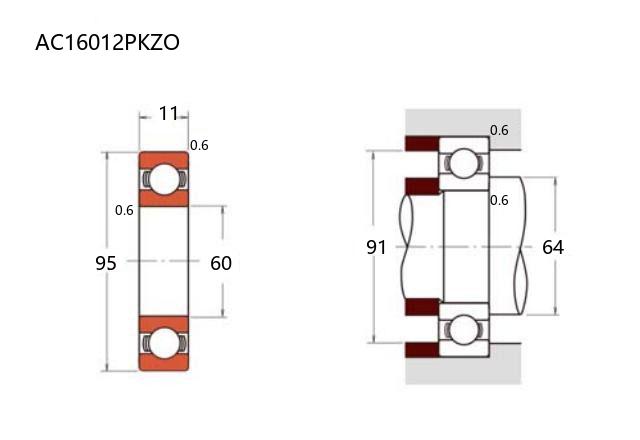 AC16012PKZO是一款采用氧化锆(ZrO₂)材质制造的全陶瓷深沟球轴承,内径为60mm,外径95mm,厚度11mm。该型号轴承属于标准深沟球轴承中的全陶瓷类型,具备典型的深沟球结构设计,适用于高速运转及高精度要求的应用场景。