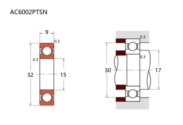 前缀列表:【AC:全陶瓷轴承】后缀列表:【PT:聚四氟乙烯(PTFE)保持架】【SN:氮化硅(Si3N4)材质】