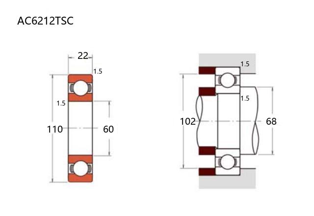 AC6212TSC是一款全陶瓷深沟球轴承,内径为60毫米,外径110毫米,厚度22毫米。该轴承采用碳化硅(SiC)材料制造,具备良好的耐高温、耐腐蚀和抗磨损特性,适用于高速或特殊工况环境。