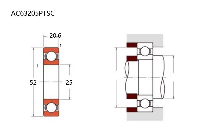 AC63205PTSC是一款采用碳化硅(SiC)材质制造的深沟球轴承,属于全陶瓷轴承类别。其内径为25毫米,外径52毫米,厚度20.6毫米,尺寸设计符合常规标准,适用于多种工业场景。