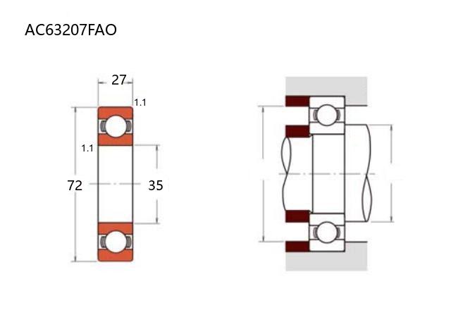AC63207FAO是一款深沟球结构的全陶瓷轴承,其内径为35mm,外径达72mm,厚度为27mm。该轴承采用氧化铝(Al₂O₃)陶瓷材料制成,内外圈及滚动体均使用高纯度陶瓷,具备较好的耐腐蚀和绝缘特性,可在一般酸碱介质或高温环境下运行。