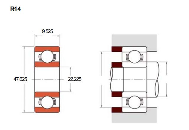 R14属于英制深沟球轴承中的标准型产品,其尺寸符合英制规格,内径约为22.225毫米,外径约为47.625毫米,厚度约为9.525毫米,对应英制尺寸可换算为内径7/8英寸、外径1.875英寸、厚度3/8英寸。这类轴承通常采用开放型设计,具备一定的径向负荷承载能力和中等转速适应性,结构紧凑且安装简便。