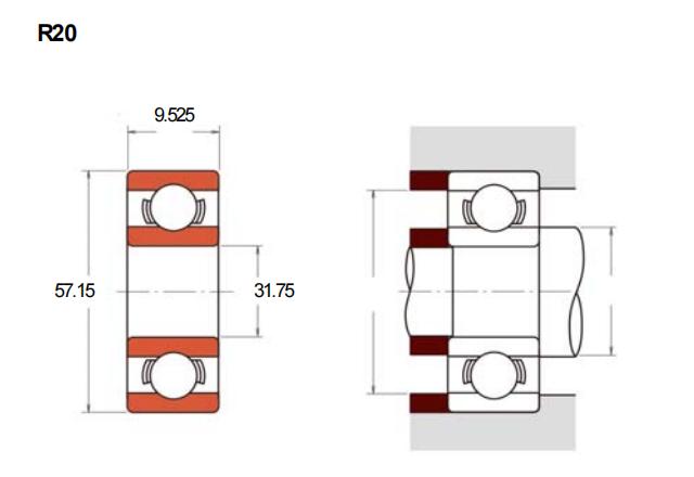 R20轴承属于英制深沟球轴承中的标准型产品,其尺寸为内径31.75毫米(约1.250英寸)、外径57.15毫米(约2.250英寸)、厚度9.525毫米(约0.375英寸)。该型号采用常见的英制尺寸设计,适用于对尺寸精度要求较高的装配环境。