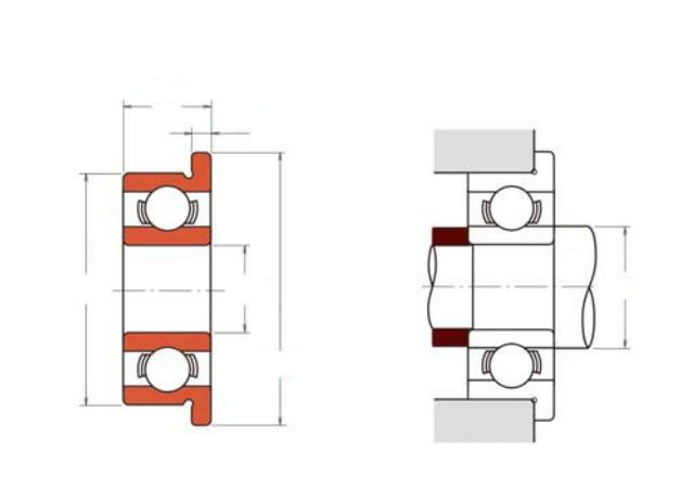 FR09轴承属于英制深沟球轴承系列,采用法兰型设计,其基本尺寸为内径1.016mm(约合0.04英寸)、外径3.175mm(约合0.125英寸)、厚度1.191mm(约合0.047英寸)。该型号轴承具有较小的径向和轴向尺寸,适用于空间受限的精密装置。其深沟球结构提供了一定的径向负荷承载能力,并能够适应中等转速工况。法兰式外圈设计便于安装定位,有助于简化结构布局。