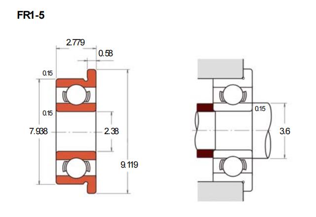 FR1-5是一款英制深沟球轴承,属于英制法兰型系列。其基本尺寸为内径2.38mm(约3/32英寸),外径7.938mm(约5/16英寸),厚度2.779mm(约0.109英寸)。该轴承结构紧凑,带有法兰外圈设计,有助于简化安装定位过程,并在有限空间内提供稳定的支承功能。