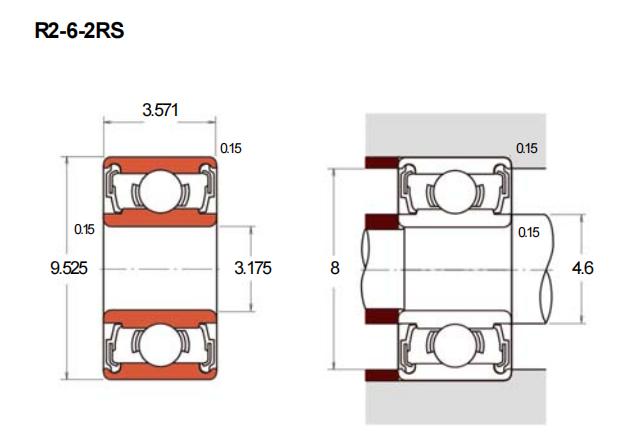 SR2-6-2RS是一款英制深沟球轴承,采用不锈钢材质制造,具有较强的耐腐蚀性和防锈能力,适合在潮湿或一般腐蚀性环境中使用。其基本尺寸为内径3.175mm(约1/8英寸)、外径9.525mm(约3/8英寸)、厚度3.571mm(约0.1406英寸),属于不锈钢英制标准型深沟球轴承系列。