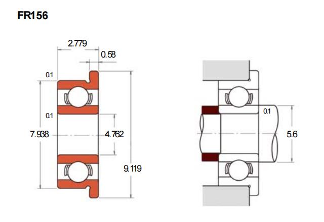 SFR156型轴承是一款不锈钢材质的英制深沟球轴承,属于法兰型结构设计。其基本尺寸为内径4.762mm(约合3/16英寸),外径7.938mm(约合5/16英寸),厚度2.779mm(约合7/64英寸)。该类轴承采用开放式结构,外圈带一体化法兰,便于轴向定位与安装固定。