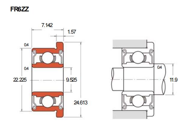 基本尺寸:内径:9.525 mm,外径:22.225 mm,厚度:7.142 mm。