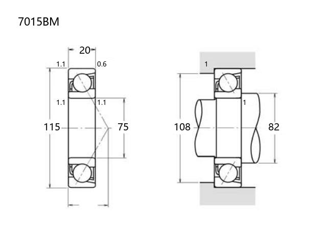 7015BM属于角接触球轴承系列,其基本尺寸为内径75毫米,外径115毫米,厚度20毫米。该轴承主要用于承受径向和轴向联合载荷,设计中接触角参数使其适用于需要较高轴向刚度的场合。