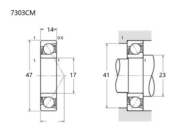 7303CM属于角接触球轴承系列,其基本尺寸为内径17mm、外径47mm、厚度14mm。该轴承结构符合单列设计,能够同时承受径向和轴向载荷,适用于中等转速及复合载荷工况。其接触角设计优化了轴向承载能力,常见于需要双向或单向轴向支撑的场合。