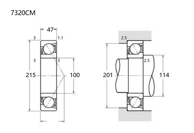 7320CM角接触球轴承内径为100毫米,外径215毫米,厚度47毫米,属于中大型轴承规格。该型号采用单列设计,接触角适中,可同时承受径向和轴向联合载荷,适用于中等转速及负荷工况。其内部结构和滚道几何经过优化,运转平稳性较好。