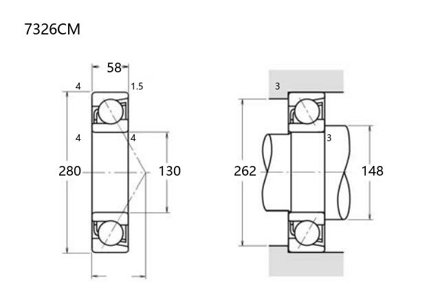 7326CM属于角接触球轴承系列,其内径为130毫米,外径为280毫米,厚度为58毫米。这类轴承设计用于承受径向和轴向联合载荷,尤其适用于高速运转场合。其接触角通常为中等角度,有助于提升刚性并减少摩擦损失。