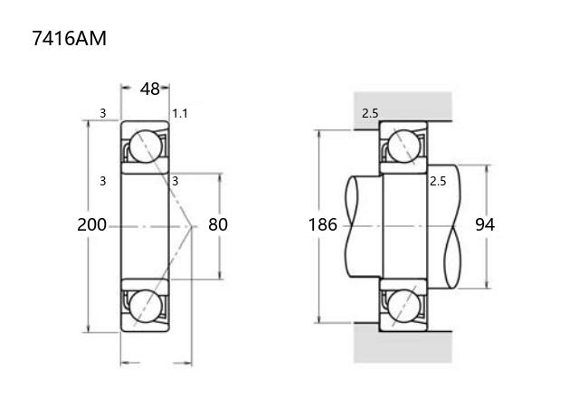 7416AM型轴承属于角接触球轴承系列,内径80mm,外径200mm,厚度48mm。该轴承结构设计适用于承受径向和轴向联合载荷,接触角优化有助于提升轴向载荷能力。其内外圈滚道具有相对位移能力,可适应一定的角度误差,常见于中等转速应用场景。