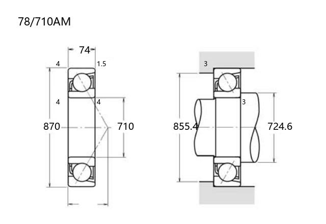 78/710AM角接触球轴承内径为710毫米,外径870毫米,厚度74毫米,属于中大型尺寸规格。该型号轴承采用角接触设计,可同时承受径向和轴向载荷,适用于较高转速工况。其接触角经过优化,能够提供稳定的刚性支撑和运转精度。该产品符合普通级公差标准,在常规工业应用中具有较好的通用性。