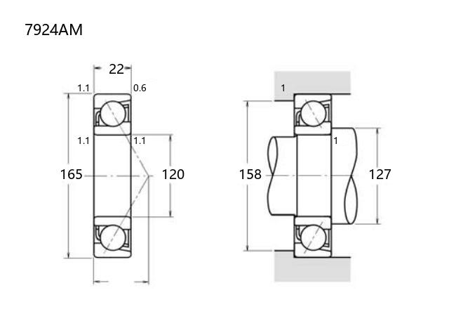 7924AM型角接触球轴承内径为120毫米,外径165毫米,厚度22毫米,属于结构紧凑的薄壁型轴承。该型号采用角接触设计,能够同时承受径向和轴向载荷,适用于中高速运转条件。