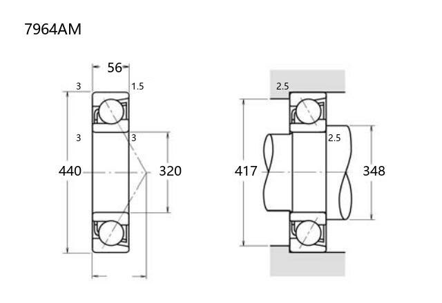 7964AM型角接触球轴承内径为320毫米,外径440毫米,厚度56毫米,属于中大型轴承规格。该型号采用角接触设计,能够同时承受径向和轴向联合载荷,适用于转速较高、需要一定刚性支撑的工况。其接触角参数经过优化,可在多种安装条件下提供稳定的载荷分布。