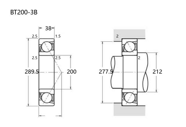 BT200-3B型轴承属于角接触球轴承类别,其基本尺寸为内径200mm、外径289.5mm、厚度38mm。该型号轴承通常采用优质合金钢制造,具备较高的转速适应性和一定的轴向承载能力,适用于中等负荷的旋转应用场景。