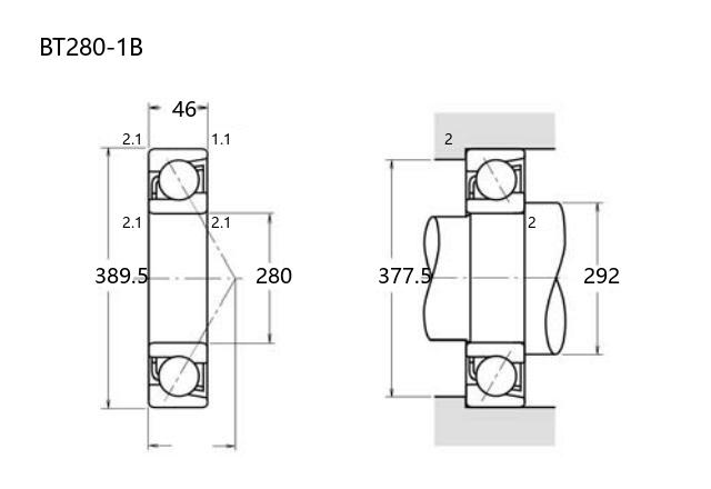 BT280-1B 角接触球轴承的内径为 280mm,外径 389.5mm,厚度 46mm,适用于需同时承受径向和轴向复合载荷的工况。该型号属于普通精度等级产品,可满足一般工业应用对刚性和运转平稳性的基本需求。