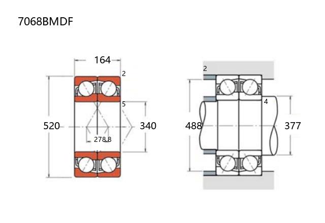 7068BMDF是一款角接触球轴承,采用背对背(DF)配对方式制造。其基本尺寸为内径340毫米、外径520毫米、厚度164毫米,属于中型尺寸范围的轴承产品。该轴承设计用于承受径向载荷和轴向载荷的联合作用,尤其适用于需要承受较高倾覆力矩或需要提高系统刚性的应用场合。