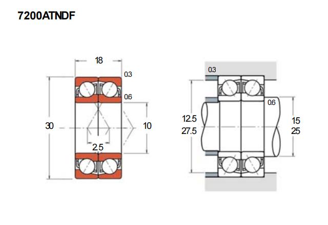 7200ATNDF属于角接触球轴承中的DF配对形式。其基本尺寸为内径10mm、外径30mm、厚度18mm。该轴承由两个角接触球轴承以背对背方式配置组合而成,这种结构能够同时承受径向负荷和双向的轴向负荷,提供较好的刚性。