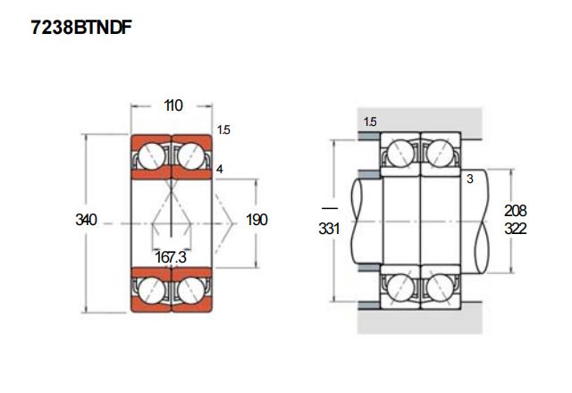 7238BTNDF属于角接触球轴承中的DF配对形式,主要应用于需要承受双向轴向负荷和径向负荷的场合。该轴承的基本尺寸为内径190mm、外径340mm、厚度110mm,结构设计紧凑,适用于中等负荷及较高转速的运行条件。