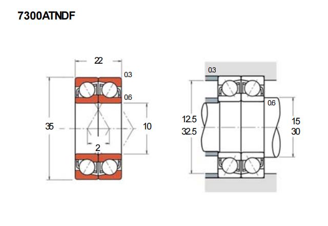 7300ATNDF属于角接触球轴承系列,其基本设计参数为内径10毫米、外径35毫米、厚度22毫米。该型号采用DF配对方式,通常适用于需要同时承受径向与轴向联合负荷的精密机械场合。